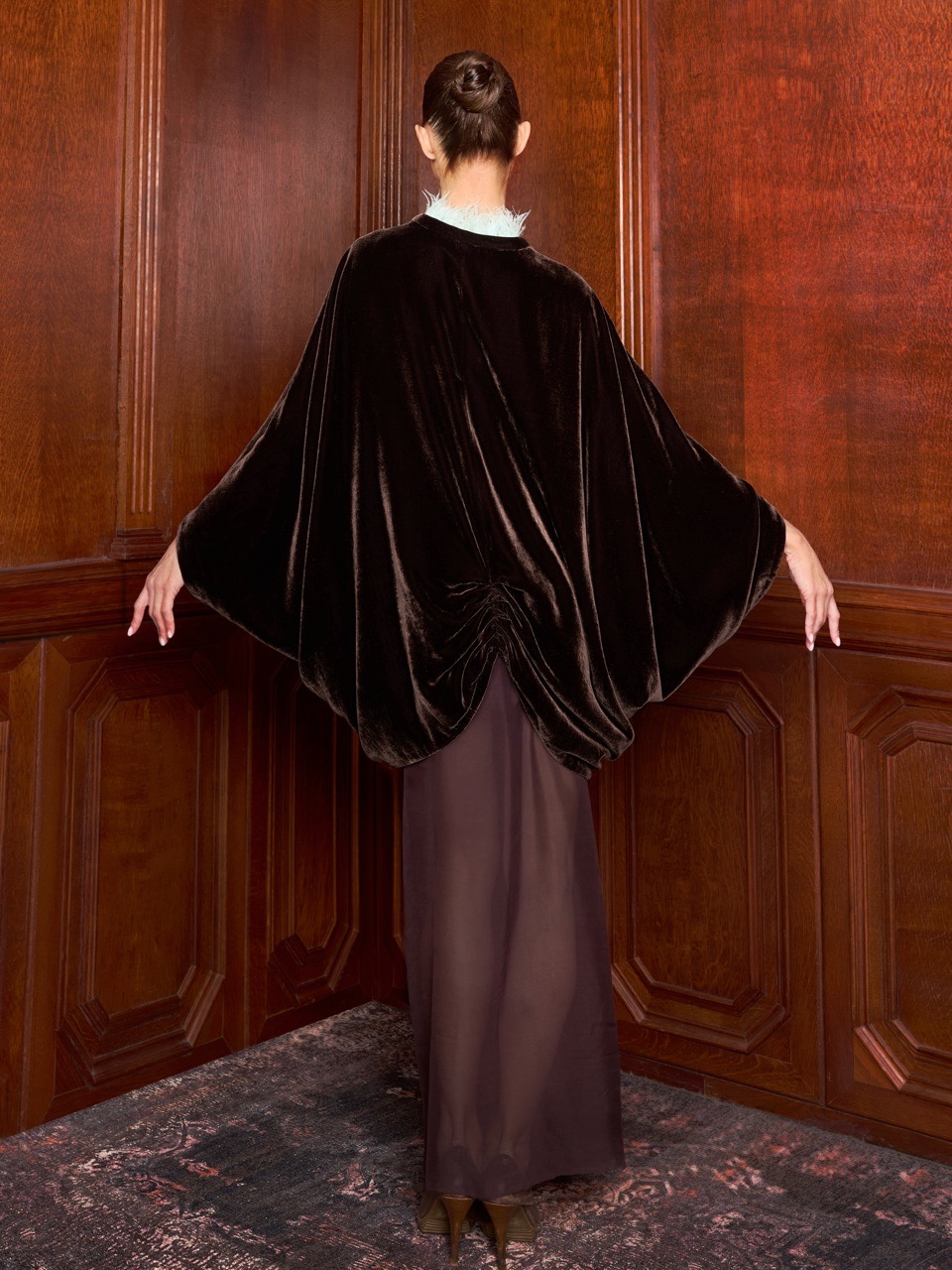 Жакет из шёлкового бархата цвета тёмного шоколада с глубокой текстурой и благородной игрой света